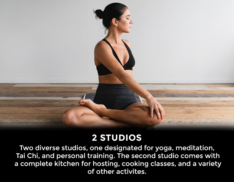 The second floor is where all the action lies. There’s an abundance of choice as to the activities our residents can indulge in. Including but not limited to: a gym, a studio for yoga, Tai Chi & meditation; and another with a complete kitchen for cooking classes & hosting dinners. There’s also a game room with a billiards, cards and board games.